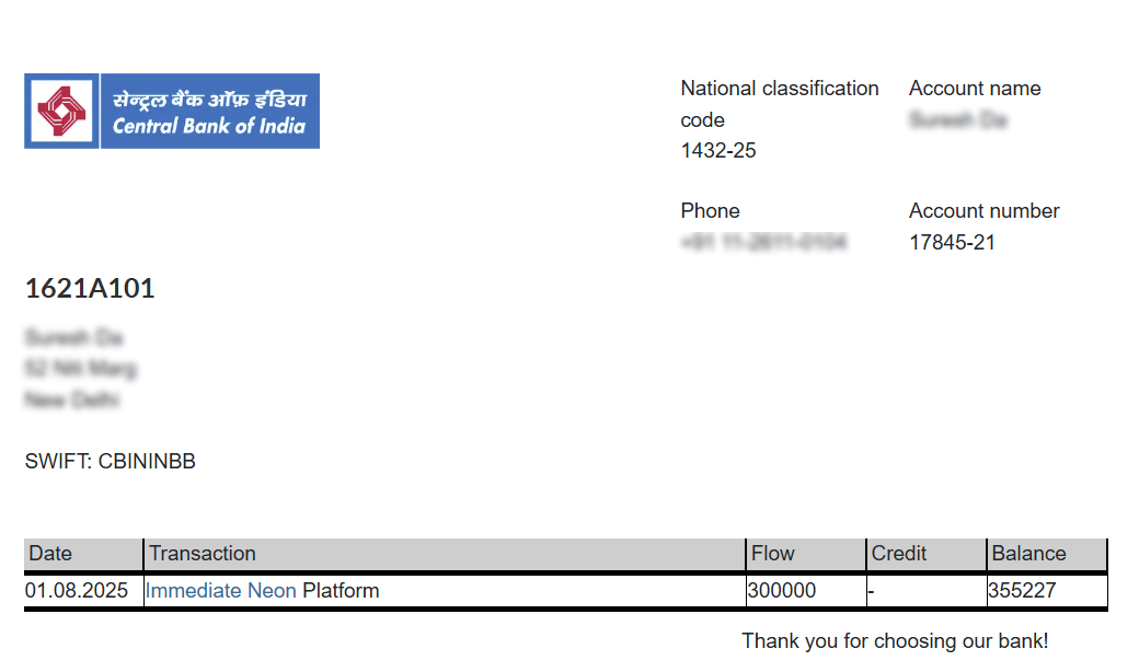 All you need to do is fill out the registration form below and activate your account (5-10 minutes). The AI will handle everything for you. Transactions made through Immediate Neon resources are reflected in your account, with payouts made daily at 10:00 AM, thanks to the secure financial network of the State Bank of India.